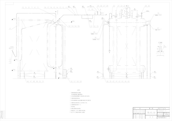 余熱鍋爐由鍋筒、活動煙罩、爐口段煙道、斜1段煙道、斜2段煙道、末1段煙道、末2段煙道、加料管(下料溜)槽、氧槍口、氮封裝置及氮封塞、人孔、微差壓取壓裝置、煙道的支座和吊架等組成。 余熱鍋爐共分為六個循環回路,每個循環回路由下降管和上升管組成,各段煙道給水從鍋筒通過下降管引入到各個煙道的下集箱后進入各受熱面,水通過受熱面后產生蒸汽進入進口集箱,再由上升管引入鍋筒。 各個煙道之間均用法蘭連接。